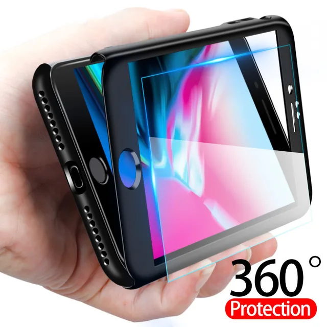 Cheap 360 Full Cover Phone Case For iPhone 8 6 7 6s Plus X Case Tempered Glass For iPhone XS Max XR 5S SE Protective Shell Case Cover