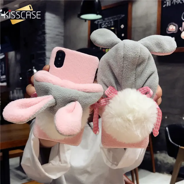 Best Offers KISSCASE Christmas Hat Phone Case For iPhone 7 6 6s Case Lazy Rabbit Fluffy Case For iPhone X 8plus iPhone 7 7 Plus Fundas Cover
